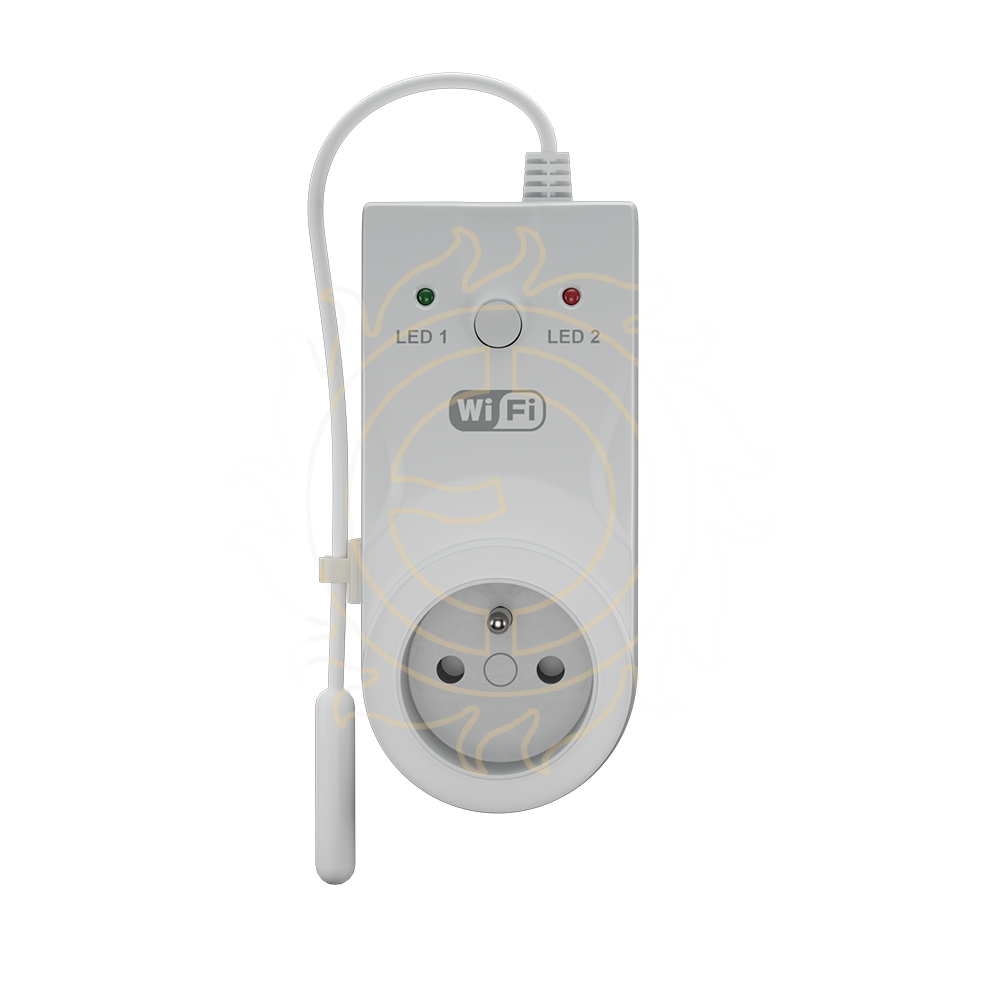 Termostat řídí připojený spotřebič podle nastaveného programu, teplotu vzduchu snímá krátkou kabelovou sondou. Sonda se svede ke spodní hraně termostatu po straně, kde bude nejméně ovlivňována zdrojem tepla. Součástí balení je také samolepící příchytka k fixaci kabelu sondy.
