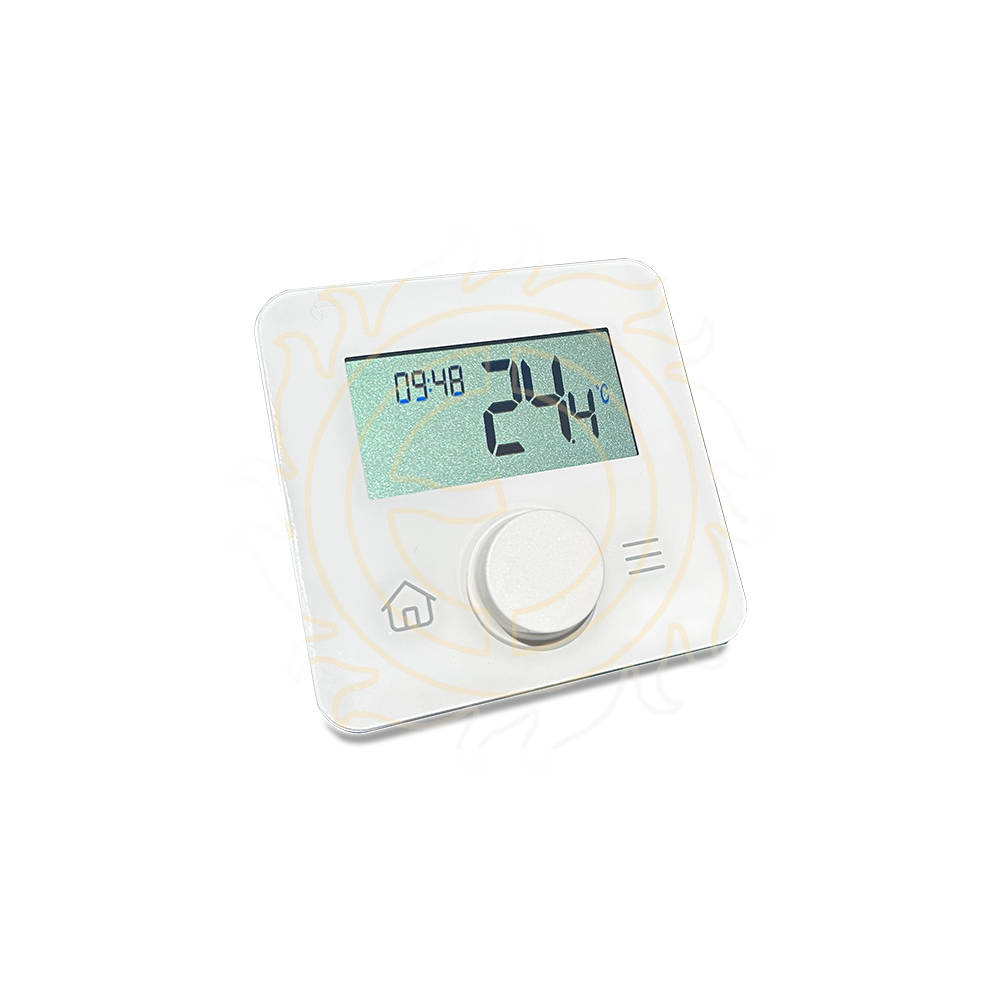 Parametry: týdenní program, zobrazení nastavené/skutečné teploty, provozní režimy Comfort, ECO, Stop, Protimrazová ochrana, Dovolená. Umístění na stěnu nebo volně na stojánek (napájení 2x AAA 1,5V), záloha programu v EEPROM paměti (10 let), obousměrná bezdrátová komunikace 868 MHz.