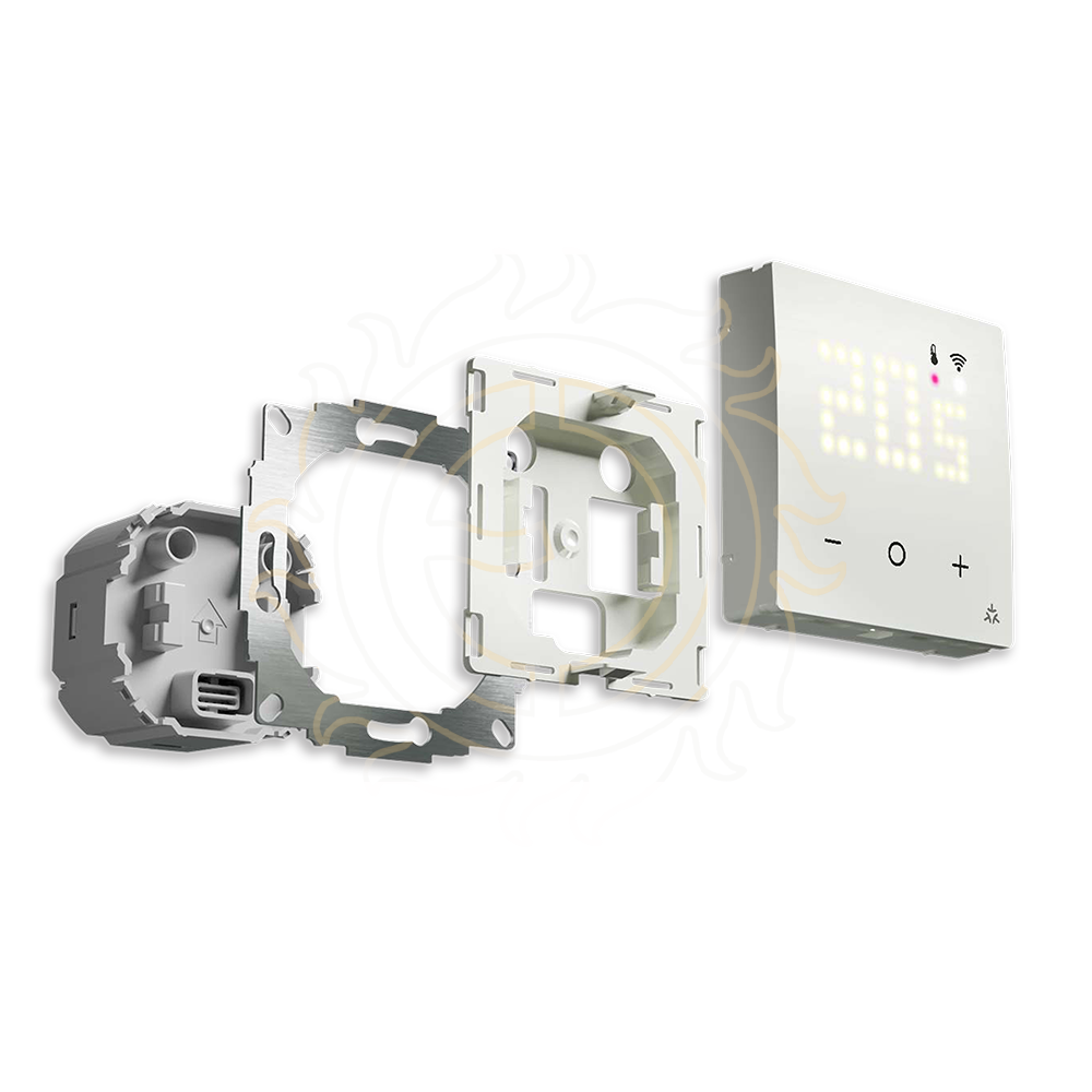 Podomítkový pokojový regulátor (bílý, RAL 9010), kompatibilní se systémem Smart Home. Ovládání pokojové teploty s Matter Wifi připojením. Hlavní výhodou je ovládání prostřednictvím populárních Smart Home aplikací od výrobců jako Apple, Google, Amazon a Samsung, což nabízí maximální flexibilitu (je vyžadován chytrý reproduktor s podporou Matter). Instalace možná bez Wifi připojení. Regulátor dále nabízí bíle podsvícený Dot-matrix LED display. Uživatelsky volitelné snímání teplot – jen prostoru, podlahy, nebo obou hodnot.