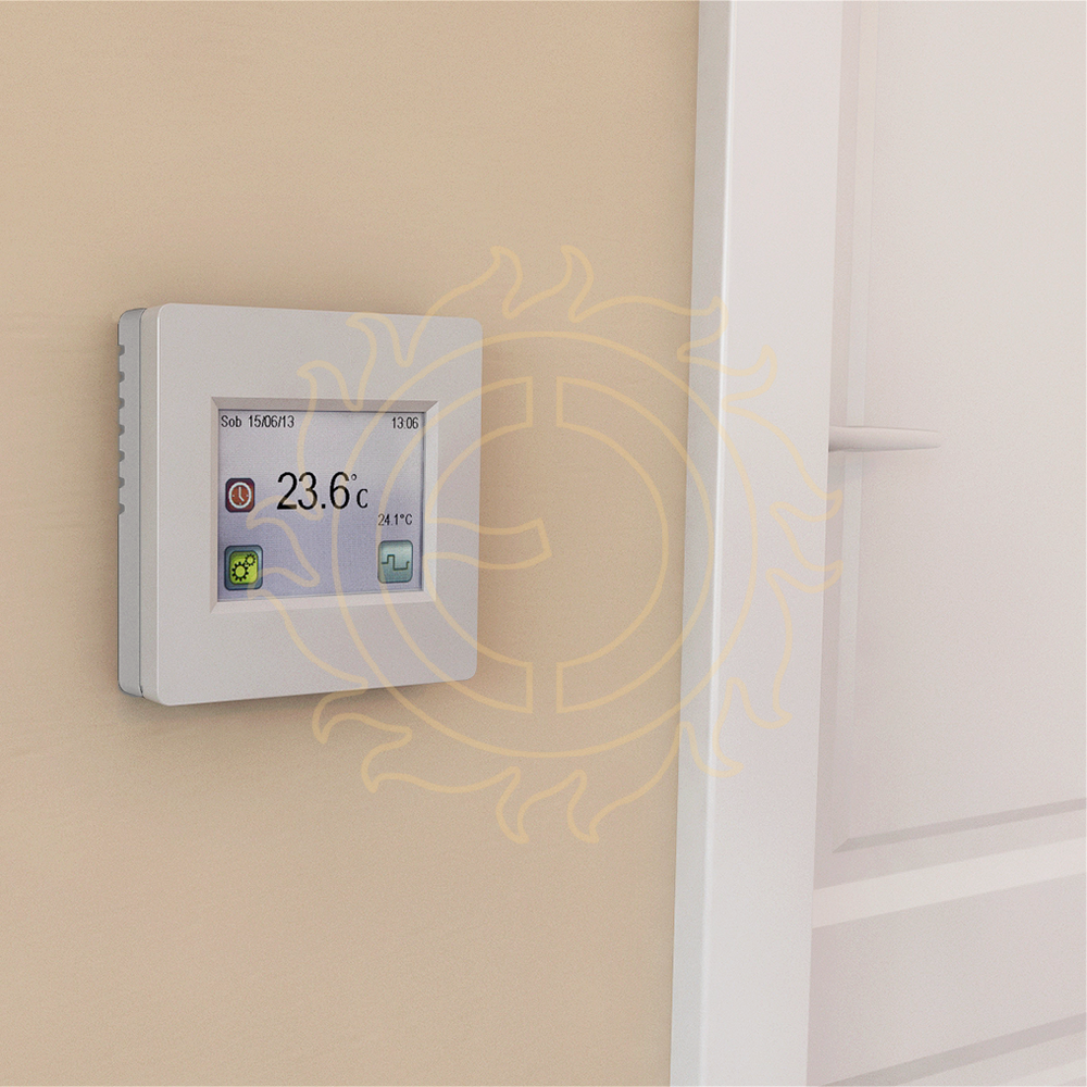 - programovatelný termostat TFT s dotykovým displejem a podlahovou sondou