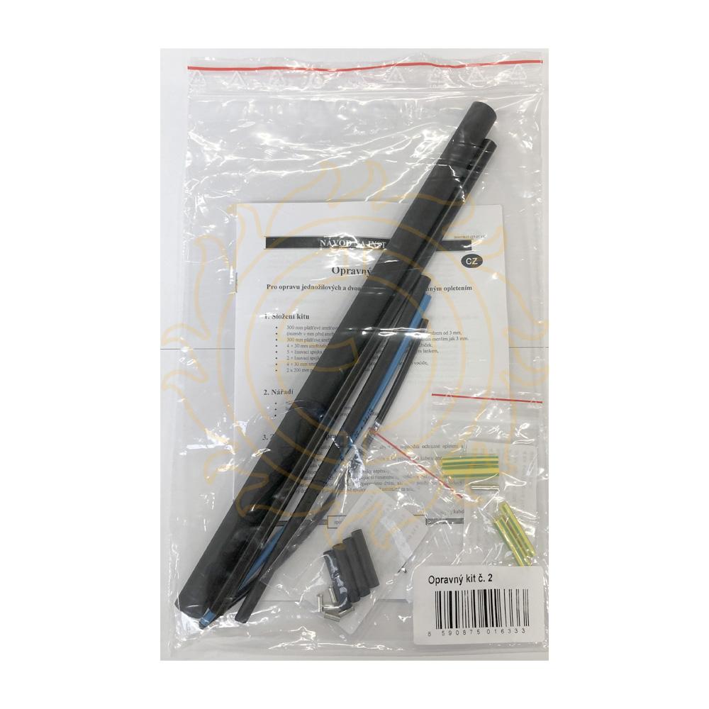 KIT č.2 slouží k opravě kabelů s opletením (bez rozdílu výkonů - okruhy PSV nebo rohože L(S)DTS, LD, T). Sada obsahuje lisovací spojky, izolační trubičky s lepidlem, propojovací kabel a návod k opravě.