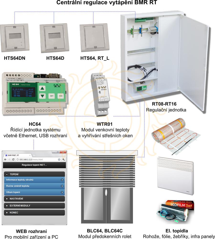 Regulátor je umístěn v samostatné skříni (součást dodávky), určené k instalaci na stěnu. Při zapuštění do stěny je nutný ještě rám RTR (objednává se samostatně), který zajistí potřebné chlazení polovodičových spínacích prvků. Kromě regulátoru jsou dalšími nezbytnými prvky systému řídící jednotka HC 64, ve které je uložen celý program a teplotní čidla. Regulátor se pro každou aplikaci sestavuje na míru, dodávka proto trvá cca 3 týdny od objednání.