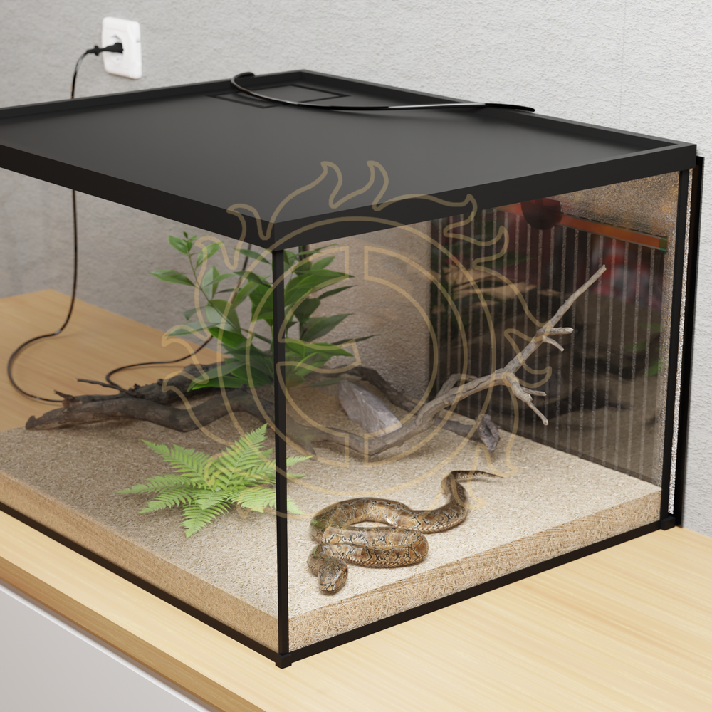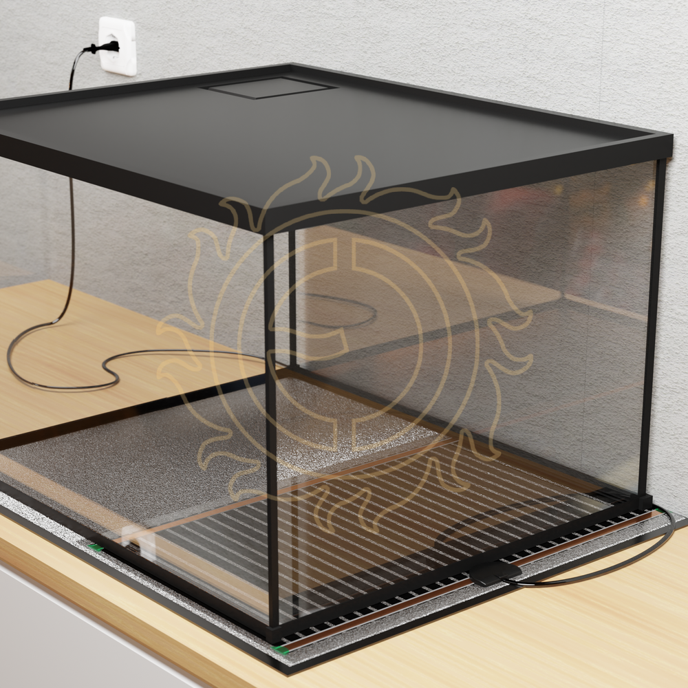 POZOR: Pokud je vytápění provozováno bez dozoru, musí být teplota omezena vhodným termostatem se sondou umístěnou ve středu vytápěné plochy! Teplota nesmí přesáhnout hodnotu požadovanou jednotlivými druhy chovaných zvířat, maximálně však 60 °C. U folií umístěných pod nádrží je důležité zajistit dostatečný odvod tepla - pozor např. na výšku a složení substrátu na dně.