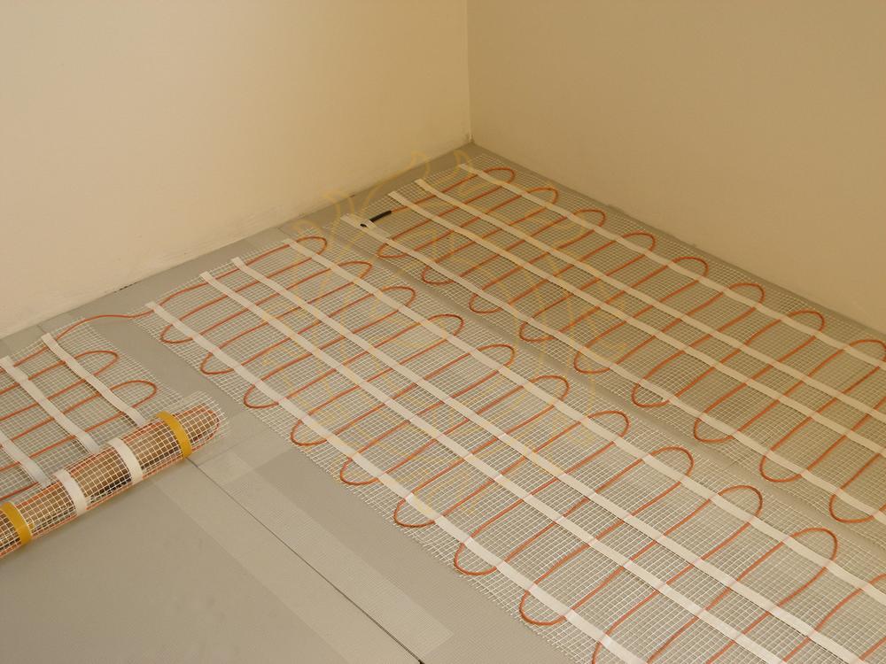 Postup: Podklad musí být rovný. Savé podklady (beton) napenetrujeme, zubovou stěrkou 6 mm naneseme flexibilní tmel a přilepíme izolaci F-BOARD. Po vytvrdnutí (cca 24 hodin) pokládáme topný prvek ECOFLOOR a zarovnáme flexibilním tmelem (dbáme na dokonalé obepnutí topného kabelu tmelem). Po zatvrdnutí lepíme dlažbu. Výška skladby (včetně dlažby) cca 3 cm.