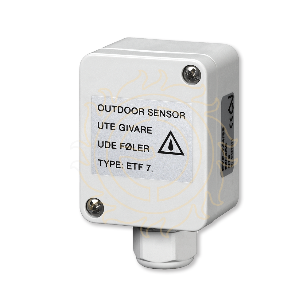 Nástěnný senzor ETF-744/99 je určen ke snímání teploty vzduchu pro regulátory ETO2-4550 a ETR2-1550. Senzor je určen přímo do venkovního prostředí, s instalací do míst, kde je zajištěna volná cirkulace vzduchu. Obvykle se umisťuje na fasádu v "nejchladnějším" místě aplikace (severní strana). Při umístění senzoru dbejte, aby snímání teploty vzduchu nebylo ovlivněno jinými zdroji (sluneční záření, ventilační nebo větrací výdech apod.).